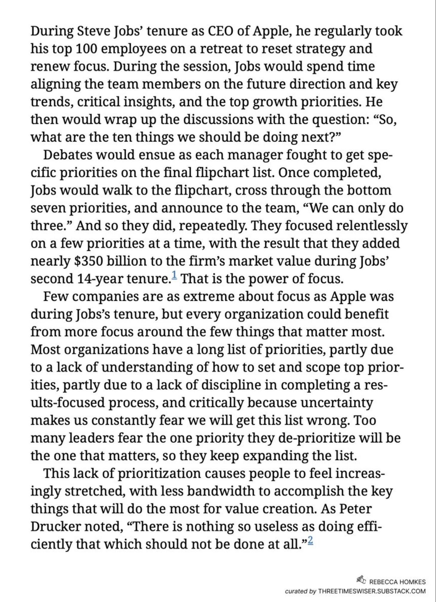 Prioritization is not optional background context. It is the core act of execution. Don’t ever forget: Everything you choose NOT TO DO is as important as what you choose TO DO.