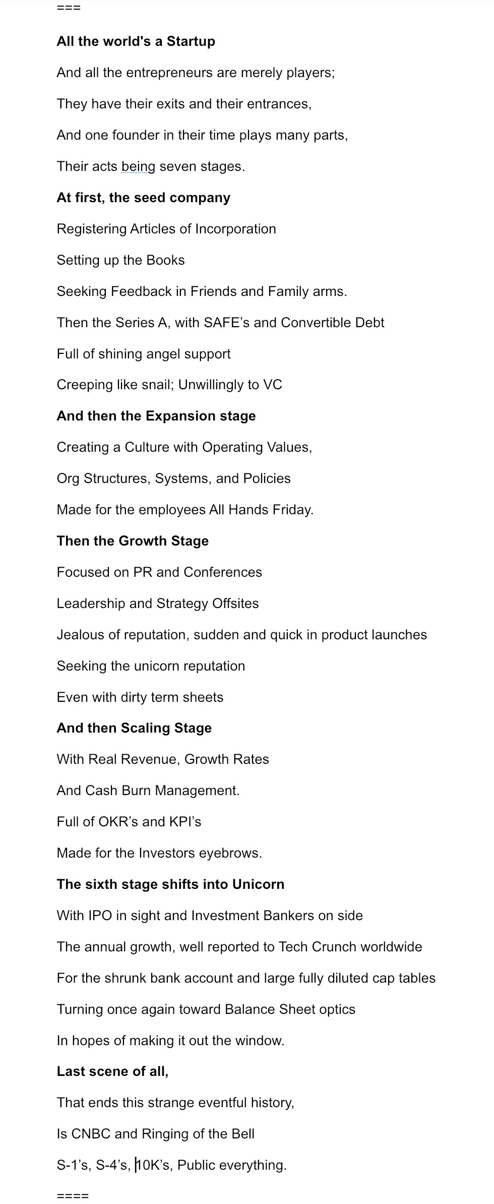 Today, it’s time to turn one of those recitals into an actual post and connect it to startups.